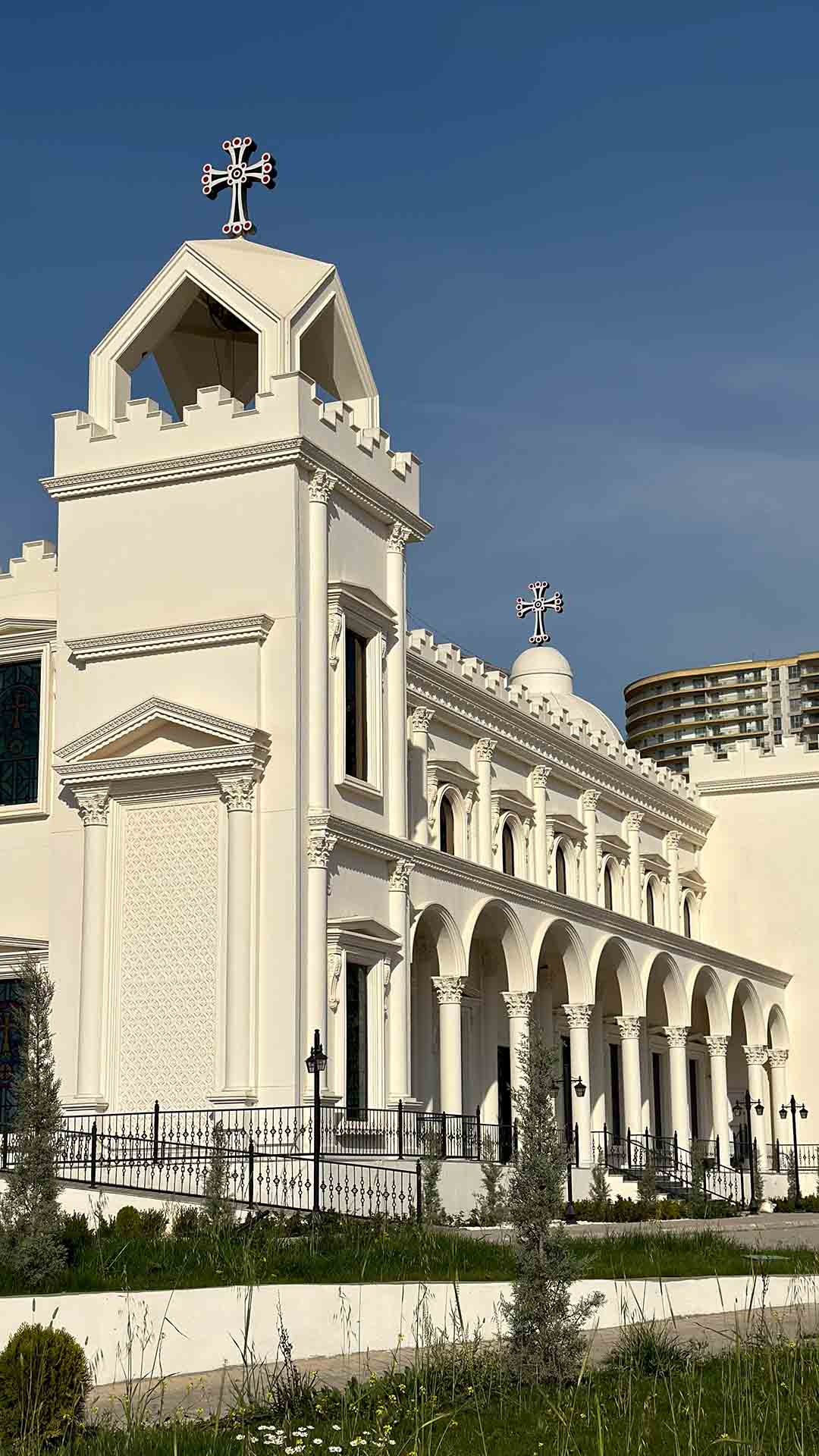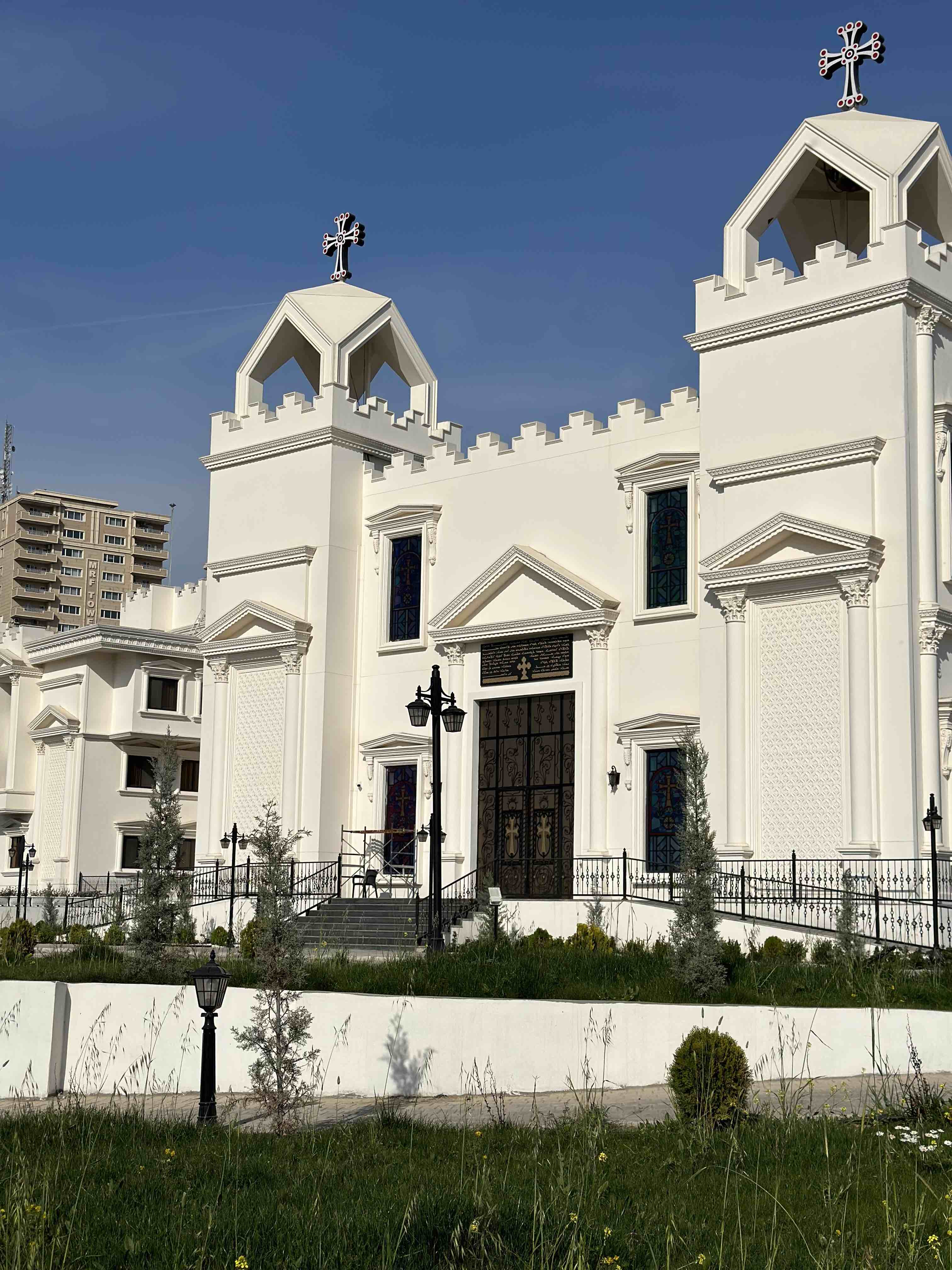 This project showcases a full GFRC façade system designed and manufactured by NUBIN Factory for the Church Hall of the Patriarchate of the Assyrian of the East. The architectural style highlights classic elegance, featuring a continuous outdoor corridor with traditional arches that define the building’s identity.