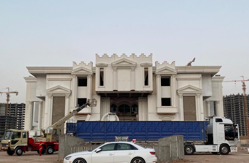 The façade showcases a rich classical style, featuring large GRC CORNICES, hand-crafted GRC CROWN, detailed patterns, and one-piece GRC columns and window frames. These elements were produced using Nubin’s advanced mold-making techniques, ensuring high-definition details and long-lasting performance.