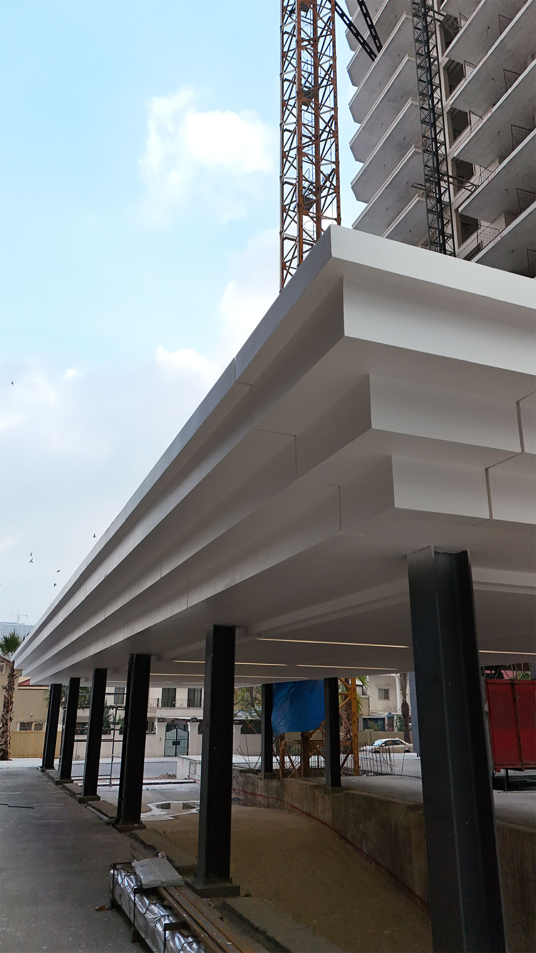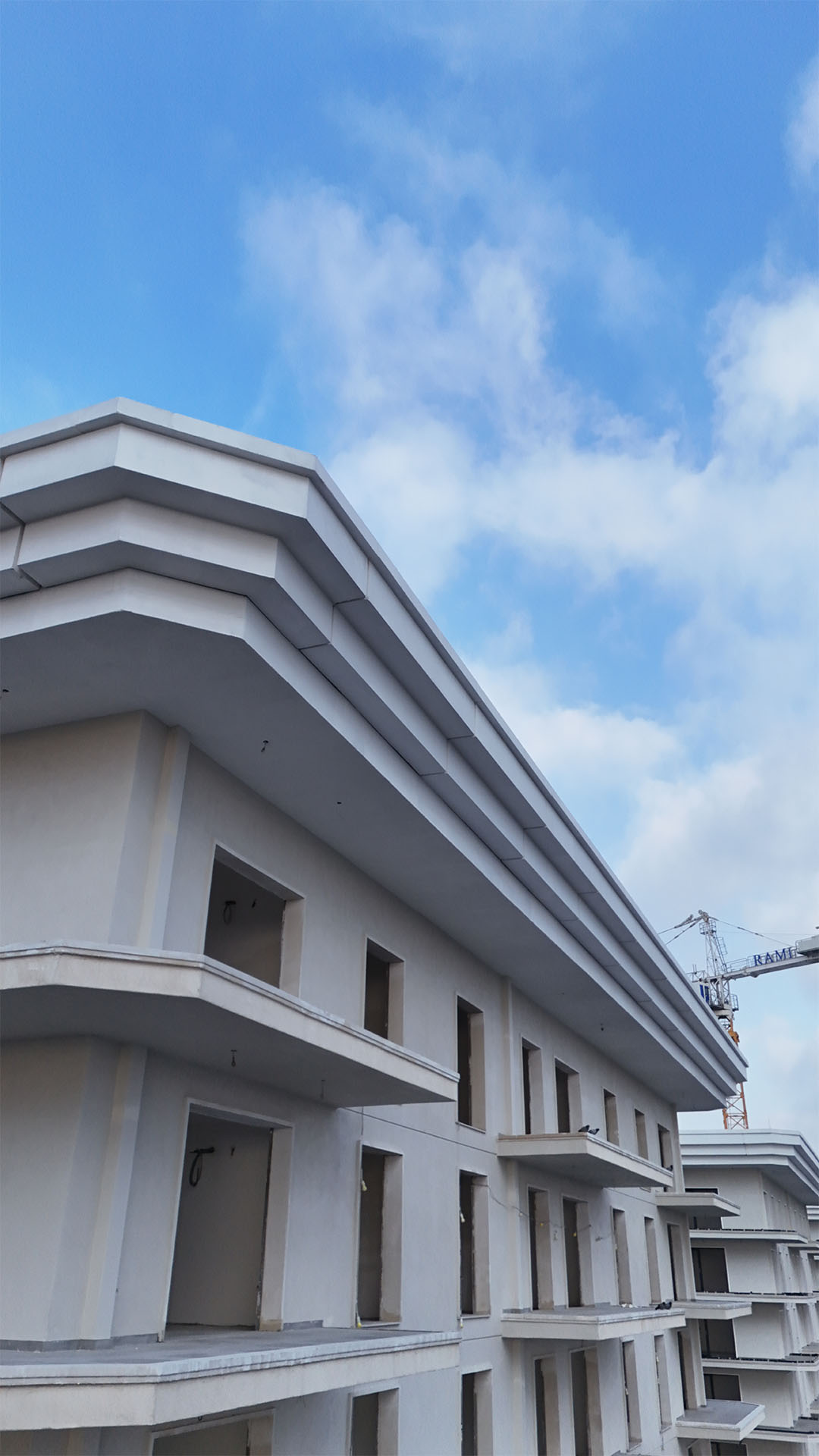 Our scope included manufacturing and installing the full rooftop GRC cornice for every tower, creating a continuous architectural crown that enhances the vertical elegance and provides a luxurious finishing line to the skyline.