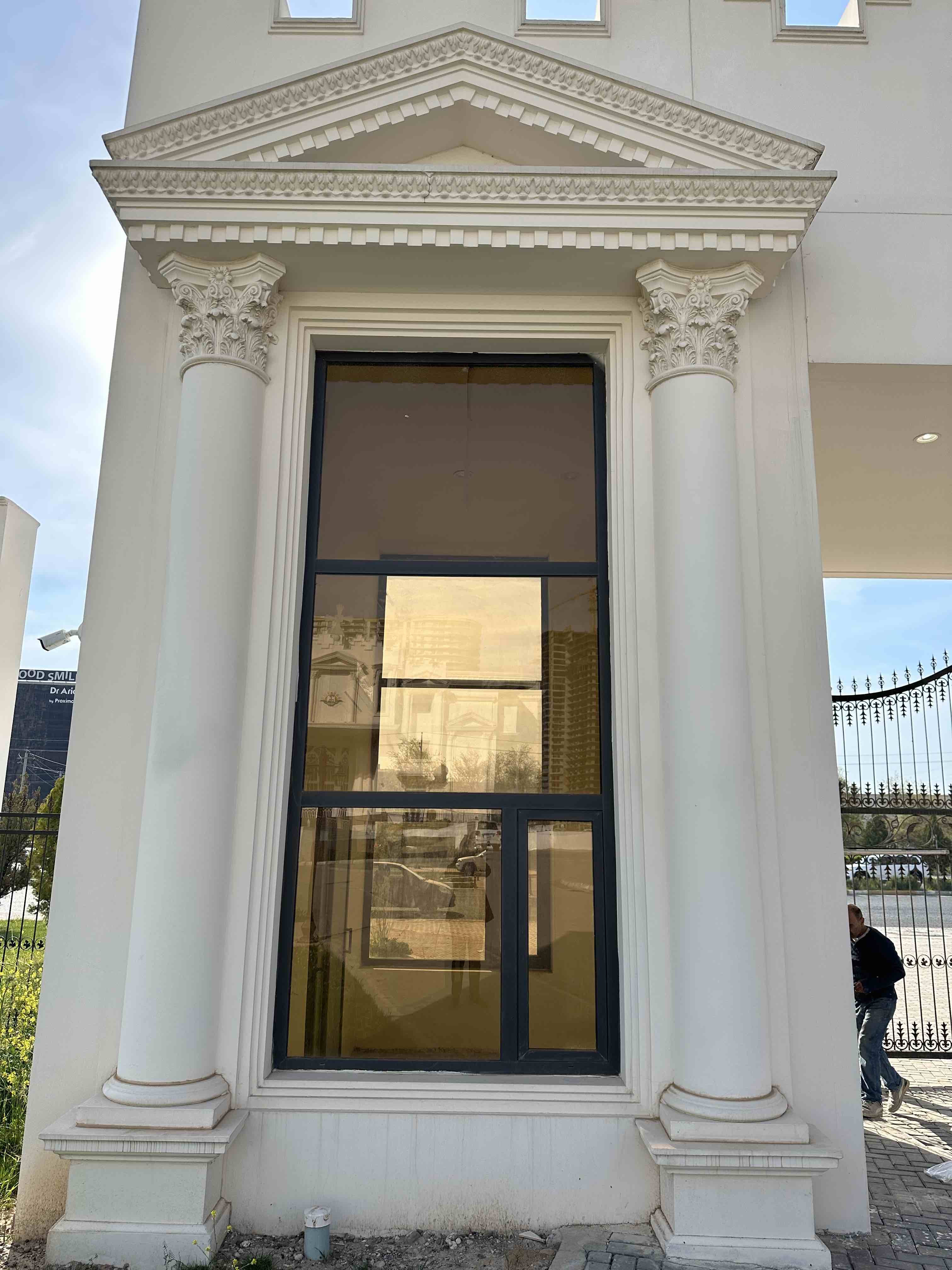 Each window GRC frame is produced as a single-piece GFRC unit, completed with decorative side brackets to enhance the historical aesthetic. The façade also incorporates GFRC columns with GRC Roman Corinthian crowns, adding a refined classical character throughout the structure.