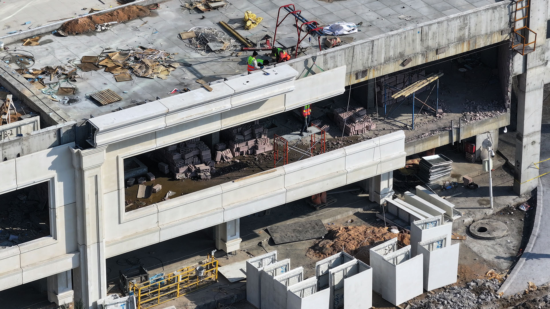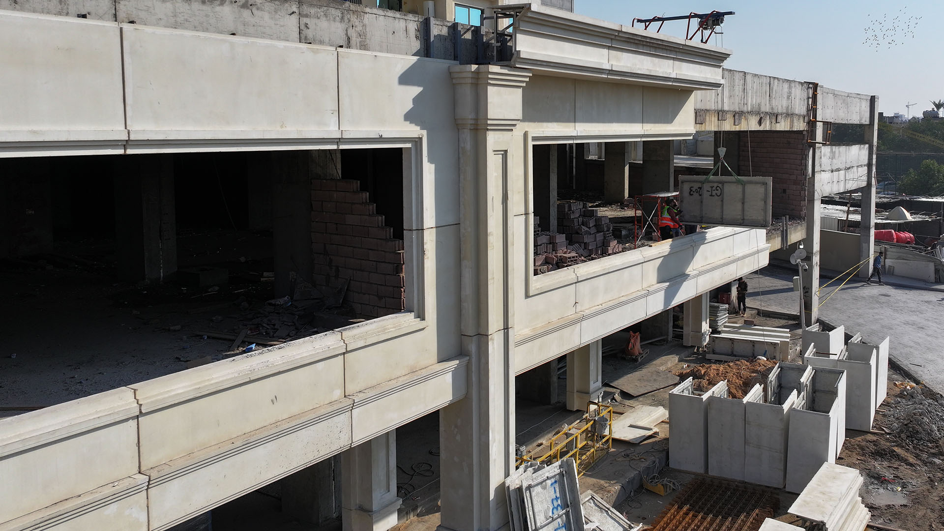 Nubin Factory completed the full GRC cladding of the Royal City residential towers, one of Baghdad’s most prominent developments. The project features two grand main gates and a continuous commercial façade that wraps more than 400 meters around the towers.