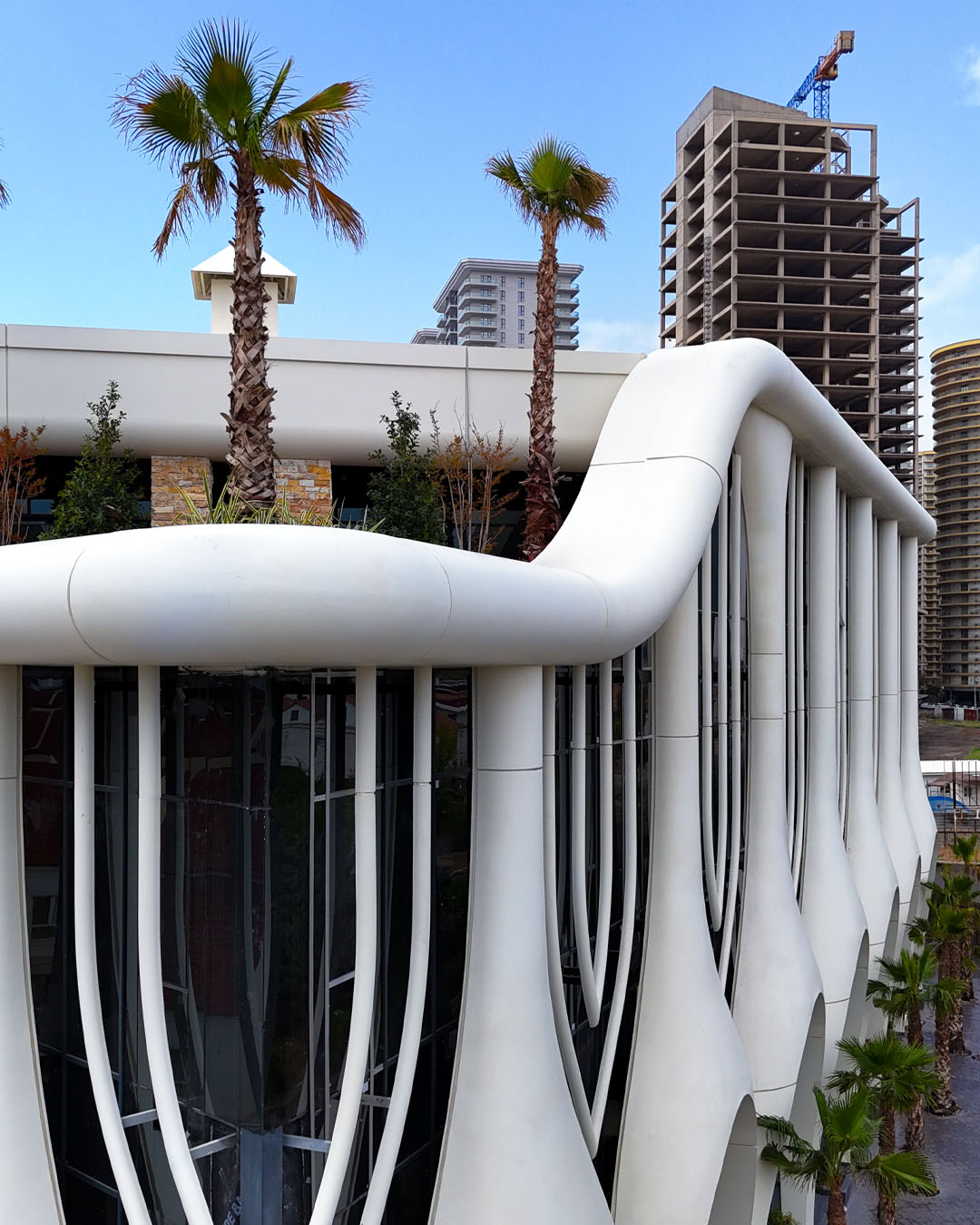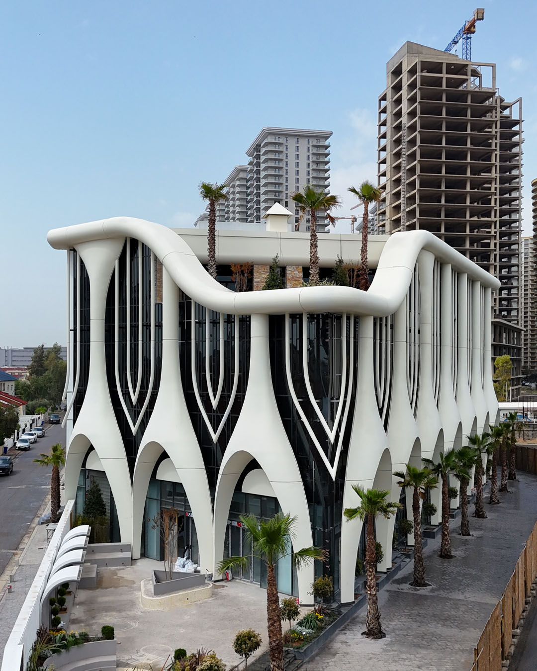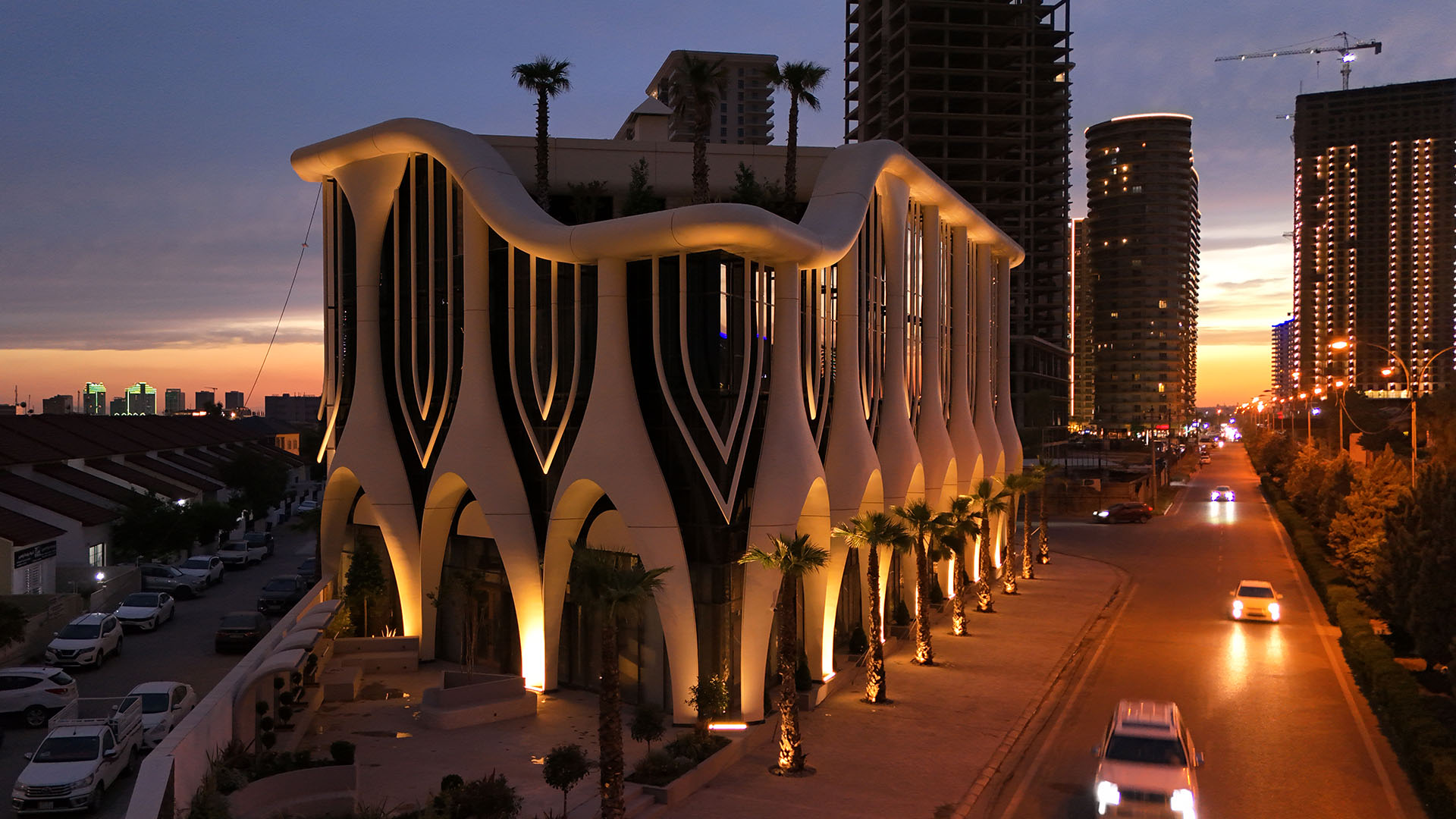 The Westpark Complex features one of Erbil’s most technically challenging façade designs, characterized by sweeping curves and pronounced vertical lines.