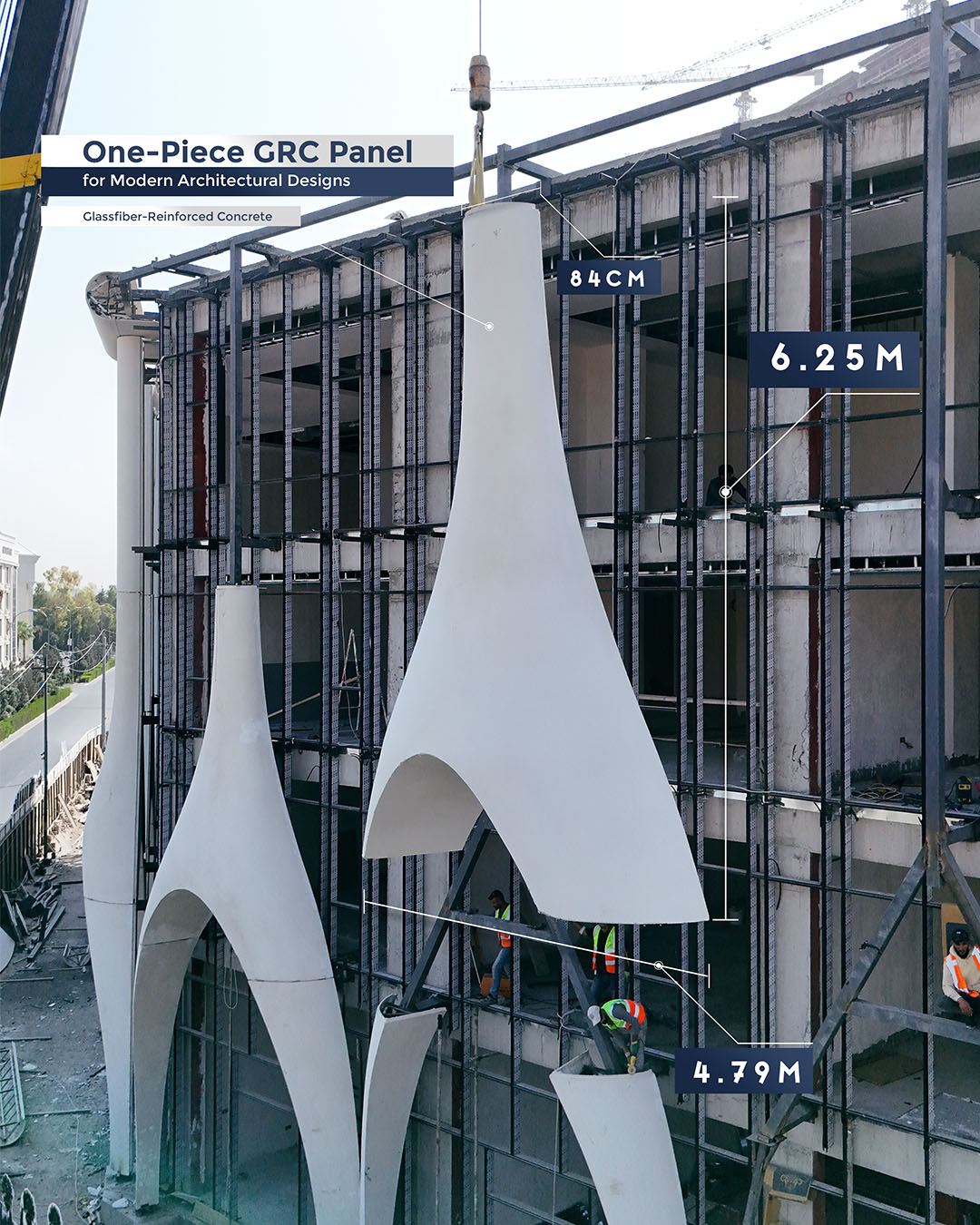 A defining strength of this project was our ability to manufacture exceptionally large GFRC panels while maintaining outstanding accuracy, durability, and surface quality.